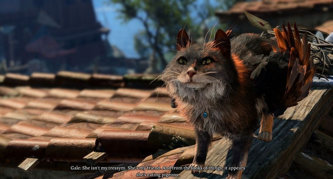 Una vez que subas al techo, encontrarás el nido de un hermoso tressym de carey, también conocido como gato alado. El gato ha estado comiéndose las palomas y guardando las cartas en su nido. Si Gale es parte del grupo, identificará al gato como su amiga Tara. Puedes pedirle que hable con Tara, y Gale la convencerá de que deje de atacar a las palomas, dándote acceso al nido y al Anillo de Blink que se encuentra entre las letras.