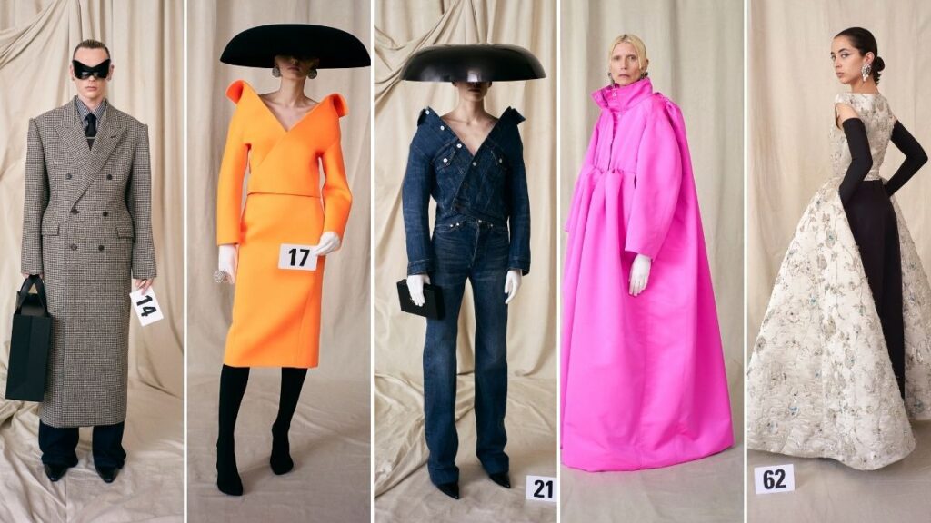 Gvasalia quería mostrar su primera colección de alta costura con público —”aunque fuera poco”—, por eso pospuso casi un año su presentación. Su propuesta bien merecía la espera. Un trabajo potente, crudo, brutal, de una belleza casi violenta, que consigue lo que pocas colecciones logran ya en un mundo saturado por productos e imágenes: fijarse en la memoria y provocar emociones intensas —ya sean de admiración o desasosiego— en quien lo contempla. En completo y solemne silencio, el director creativo de Balenciaga mostró piezas que rendían claro homenaje al fundador de la firma: capas inspiradas en el vestido negro envuelto en gazar y creado por el vasco en 1967; abrigos de plumas que reinterpretan el de pétalos de 1950; un traje naranja, espejo de otro semientallado de 1952; y un diseño nupcial que actualiza con una larga cola el mítico de 1967. Pero el diseñador georgiano también quiso incorporar otros elementos inéditos —y considerados sacrílegos— dentro del vocabulario clásico de la alta costura: pantalones vaqueros, cazadoras bomber, gabardinas, camisetas. Cristóbal Balenciaga estaba presente además en los cuellos kimono de las camisas, en las espaldas baggy (abultadas) de las chaquetas, y en las intensas tinturas rosas y naranjas que Gvasalia ha producido expresamente para esta colección. Había prendas para el hombre —trajes cartesianos— vestidas por mujeres; y prendas para la mujer vestidas por hombres. Bolsas de compra a modo de bolsos, ironía e historia. Y una capacidad para dar testimonio de su tiempo, como en su momento exhibió con maestría Balenciaga.