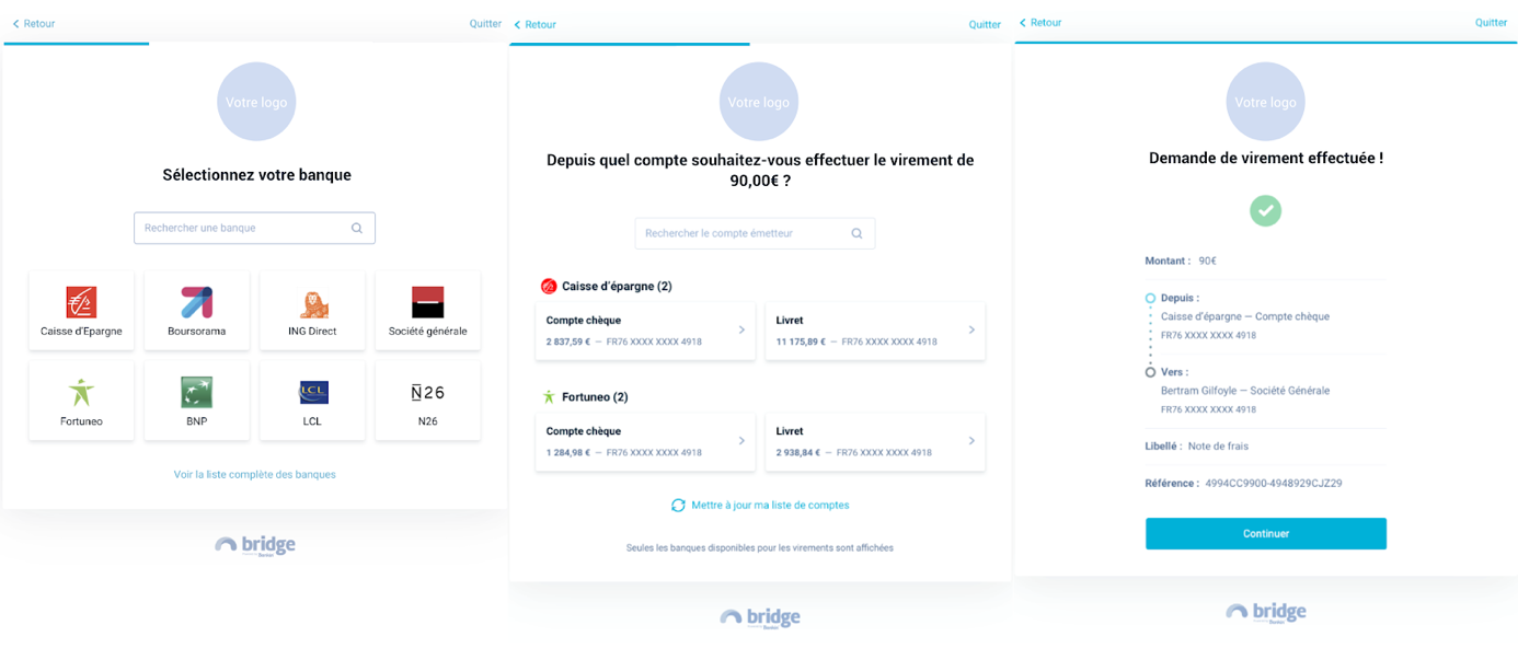 La startup francesa Bankin ha presentado Bridge Pay esta semana, una API que le permite iniciar pagos mediante transferencias bancarias desde su aplicación. Piense en ello como una especie de Stripe, pero para transferencias bancarias. Actualmente, la API cubre 12 bancos franceses importantes, que representan alrededor del 90% de las cuentas bancarias minoristas en Francia.