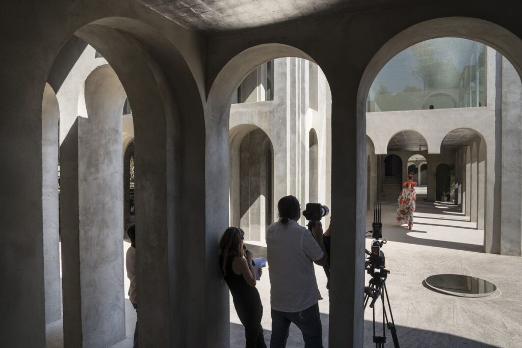 “No hay otro modelo, la pasarela con el concepto tradicional tienen que morir. No hay otra que abrirse al mundo”. Así de claro lo tiene Jose María Garcia-Planas, director creativo de The (Real) Garcia, una marca con menos de un año de vida que se define “como básica, atemporal y sostenible” y que tiene detrás una familia dedicada al textil durante seis generaciones. Para ellos, la experiencia de rodar en la 080 ha sido “fabulosa”. Garcia-Planas recuerda un encuentro con el escultor Xavier Corberó en su casa en los años ochenta y se rinde ante el monumento del artista mientras reconoce que, aunque había sido crítico con los desfiles y el apoyo institucional a la pasarela, su visión ha cambiado con este nuevo formato. “Esto es otra historia, nos interesa porque creemos en el mundo digital y la comunicación que permite el fashion film”.