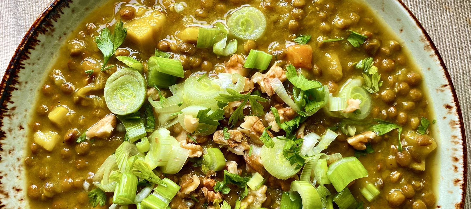 - Crema de calabaza con garbanzos, aguacate y albahaca + pasta corta con brócoli, leche evaporada y gorgonzola