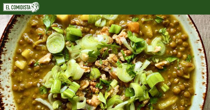 - Después de unos 75 minutos desde que hemos puesto las verduras, la calabaza ya estará lista. Pasar un agua a la olla de las lentejas y devolver al fuego. Poner la carne de la calabaza, que sacaremos con una cuchara, 1,2 l de caldo de verdura y los garbanzos; llevar a ebullición 5 minutos y, ya fuera del fuego, añadir un puñado de hojas de albacaha y los aguacates. Triturar y ajustar de sal y pimienta: la crema de calabaza con garbanzos, aguacate y albahaca ya está lista.