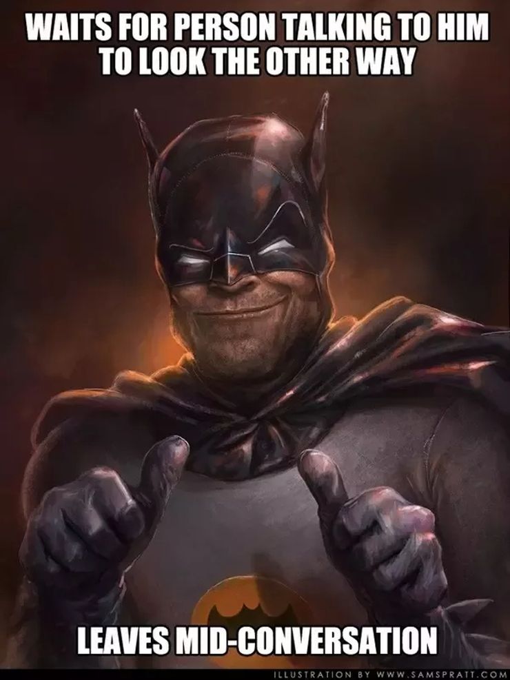 A estas alturas, Batman dejando la mitad de la conversación es una parte tan importante de su legado como la Batiseñal. Una vez que tiene la información que necesita, desaparece, y comenzó con las películas de Batman de Burton. Su partida repentina se suma a la mística que lo rodea, haciéndolo parecer aún más sobrenatural de lo que ya parece el traje de murciélago.