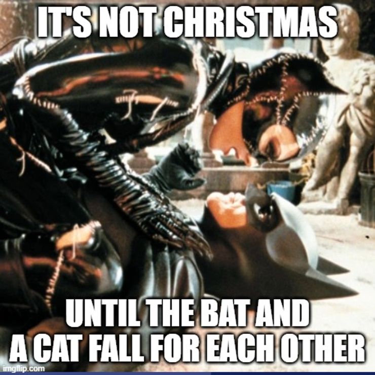 Batman Regresa presenta a uno de los mayores villanos e intereses amorosos de Batman, Catwoman, interpretada a la perfección por Michelle Pfeiffer. La tragedia de su romance le da a la película una cierta profundidad poética y, como implica este meme, no es Navidad hasta que The Bat y The Cat se enamoran.