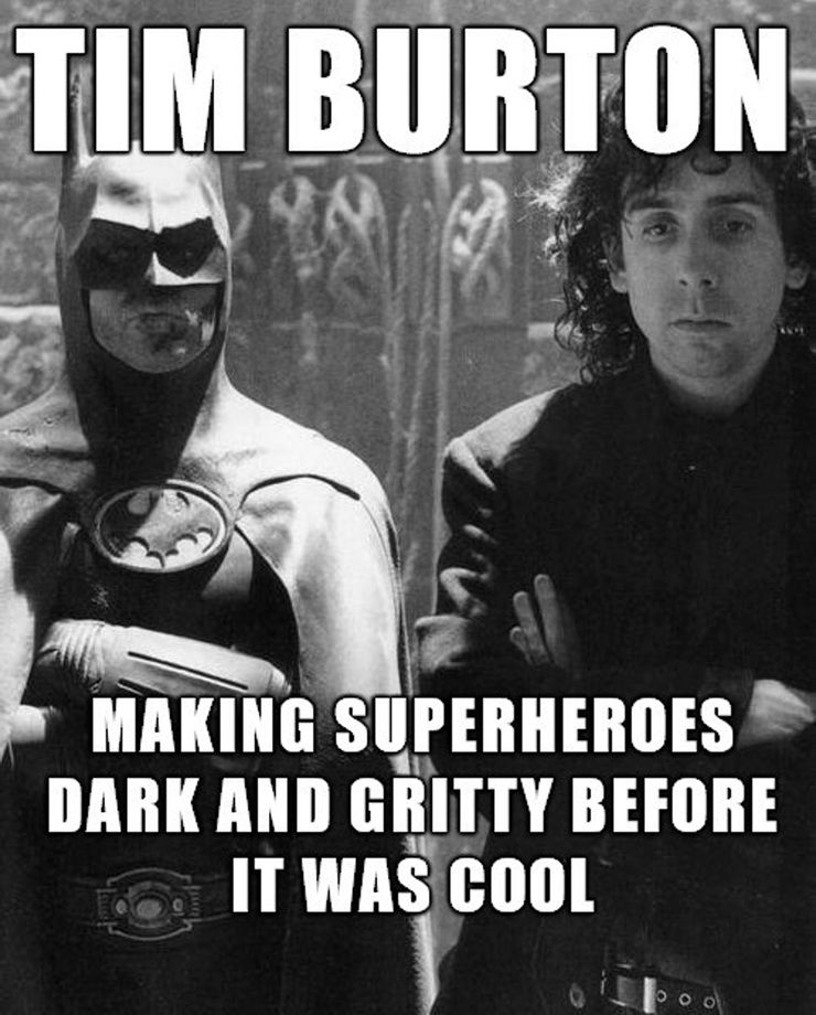 Hasta la versión de Tim Burton del personaje (adaptado de la descarnada historia de Frank Miller). El caballero de la noche Regresa en 1986), la mayoría de los fanáticos asociaron a Batman con la representación caricaturesca de Adam West en los años 60. Estos memes capturan perfectamente el estilo, la historia y los componentes que continúan haciendo que las películas de Batman de Burton sean tan distintivas y queridas.