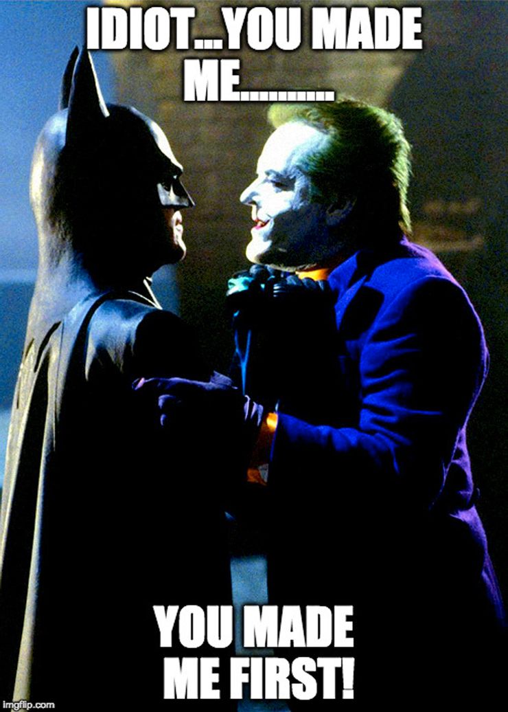 Este meme de Batman se burla del dilema que plantea la película; ¿Existiría Batman sin el Guasón, y existiría El Guasón sin Batman? Cada uno de ellos se “hizo” el uno al otro en función de sus acciones elegidas en un solo momento, y quizás estén destinados a estar entrelazados para siempre.