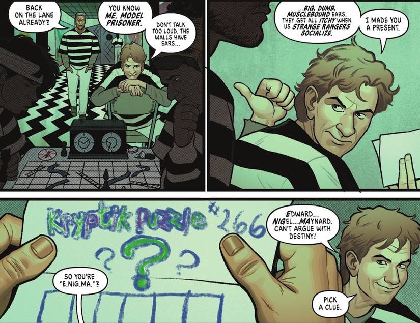 Sin embargo, el segundo nombre y el apellido “Nigel Maynard“Soy completamente nuevo en la escena del cómic, lo que confirma una vez más que el Acertijo es un enigma tal que resulta difícil encontrarle un nombre consistente.