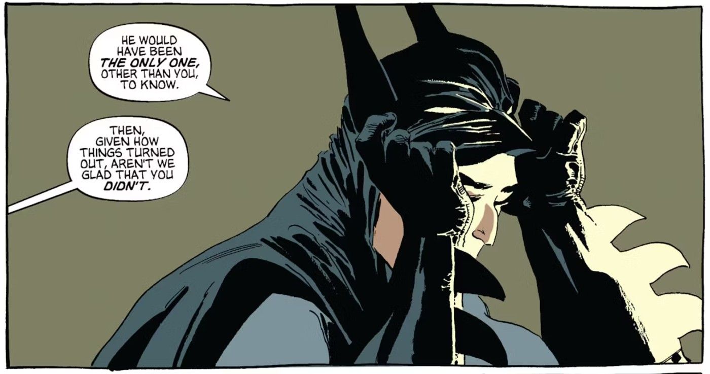 Antes de que Harvey Dent se convirtiera en el villano Two-Face, Batman admite que realmente estaba considerando compartir su identidad secreta con él., e incluso se pregunta si hacerlo podría haber evitado que Harvey se cayera. Si bien esta elección puede parecer sorprendente, las adiciones posteriores a la historia de los dos realmente cimentan su amistad, dando una razón aún más fuerte de por qué Bruce consideraría revelar su secreto.