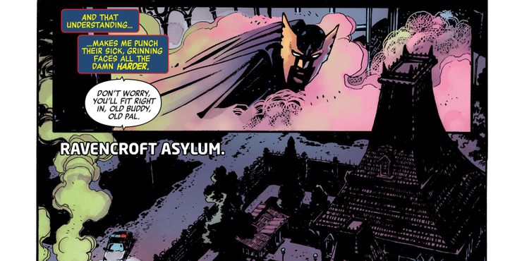 Continuando para vincular sus formas perversas con sus propias acciones, básicamente diciendo que se ve a sí mismo en ellas y que comprende sus rabiosos ataques de locura en un nivel básico, Nighthawk sigue este pensamiento con una revelación explosiva cuando dice: “Y eso comprensión … me hace golpear sus rostros enfermos y sonrientes más difícil, ”Argumentando fácilmente por qué tanto él como su doppelgänger DC de Batman son tan brutales en sus tácticas.