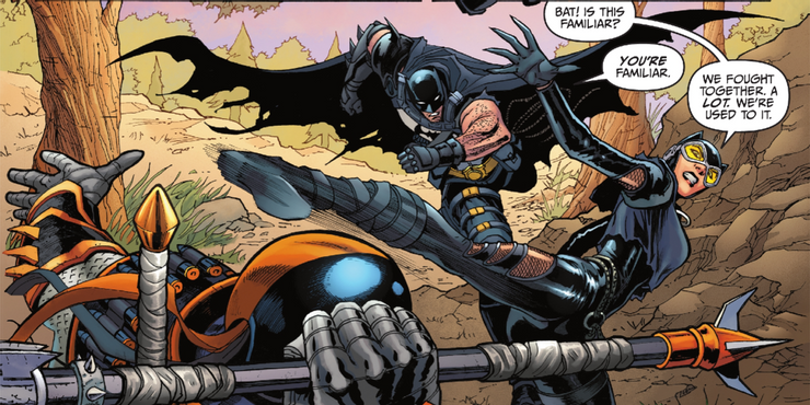 Donald Mustard, Christos Gage, Christian Duce, John Kalisz y Andworld Design son el equipo creativo detrás Batman / Fortnite: Punto cero # 4. Este problema comienza con Batman enfrentándose a Deathstroke mientras el villano restringe a Catwoman. Deathstroke y Catwoman tienen las primeras líneas de este número, mientras que la primera de Batman es decir: “Está bien. Déjala ir”. De manera típica, su primer instinto es salvar a alguien en problemas, incluso si no está muy seguro de quién es ella.