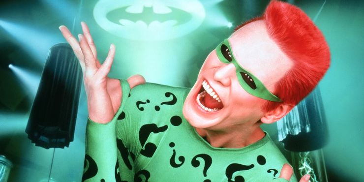 Antes de Dano, el Acertijo de acción real más famoso en las películas fue Jim Carrey en batman para siempre. Con su actuación descaradamente alocada, Riddler es fácilmente el personaje destacado de la película, eclipsando a su compañero en el crimen, Two-Face.