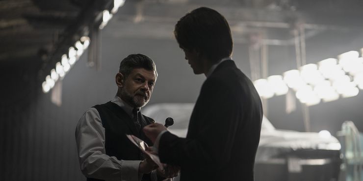 A diferencia de otras versiones del personaje, Alfred de Serkis se enorgullece de ayudar a Bruce con su trabajo de investigación. Pasa horas detrás de la computadora, investigando y buscando pistas. Es en parte gracias a él que se trata con uno de los mejores villanos de Batman, Riddler. Alfred también se desempeña como mayordomo de Bruce y como jefe de comunicaciones en Wayne Enterprises, pero nunca parece sobrecargado por las numerosas tareas. En consecuencia, nunca llega a divertirse.