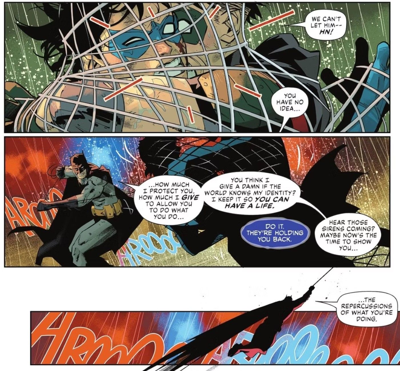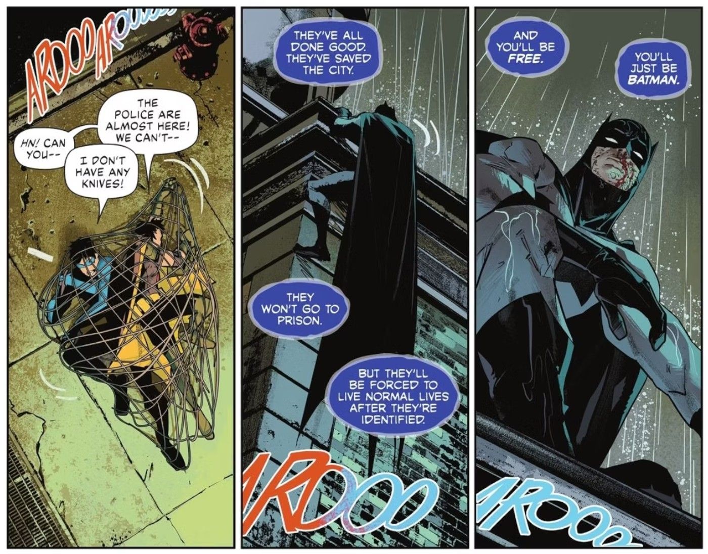 Batman salva a Nightwing y Robin, pero demuestra su punto