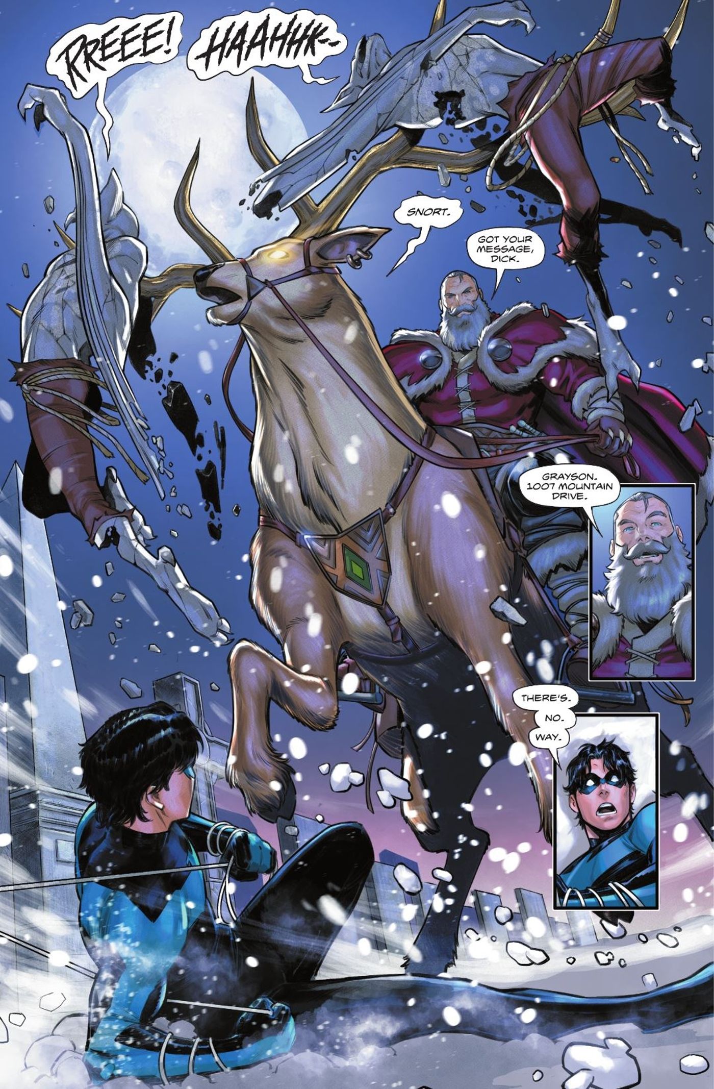 En Batman/Papá Noel: Caballero Silencioso #1 de Jeff Parker y Michele Bandini, un grupo de villancicos es atacado por un enjambre de monstruos vampíricos llamados Draug. Batman, Robin y el héroe mágico Zatanna investigan la escena del crimen antes del regreso de Draug. Afortunadamente, el equipo es salvado por el único Papá Noel.