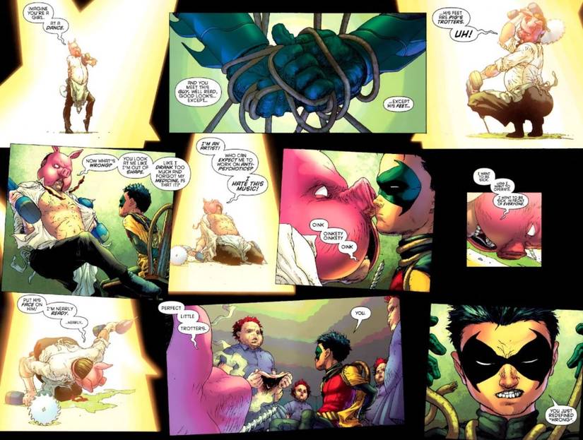 El secuestro de Damian Wayne por parte del profesor Pyg tiene lugar en Morrison’s batman y robin #3 (2009).