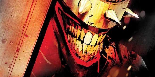 The Batman Who Laughs hizo su debut en los cómics en el evento Dark Nights: Metal como el líder de “Dark Knights of the Multiverse”, versiones corruptas de Batman con el tema de otros personajes de DC como The Flash, Aquaman, Ares y Doomsdate. Como su nombre lo indica, The Batman Who Laughs es una versión Joker de The Dark Knight y descrita por el creador Scott Snyder como “la peor pesadilla de Batman que cobra vida”. El personaje se hizo notable por tener una manada de “Rabid Robins” encadenados que lo acompañaron, aunque no parece que estos personajes se conviertan en figuras de acción en el mismo estilo visual.
