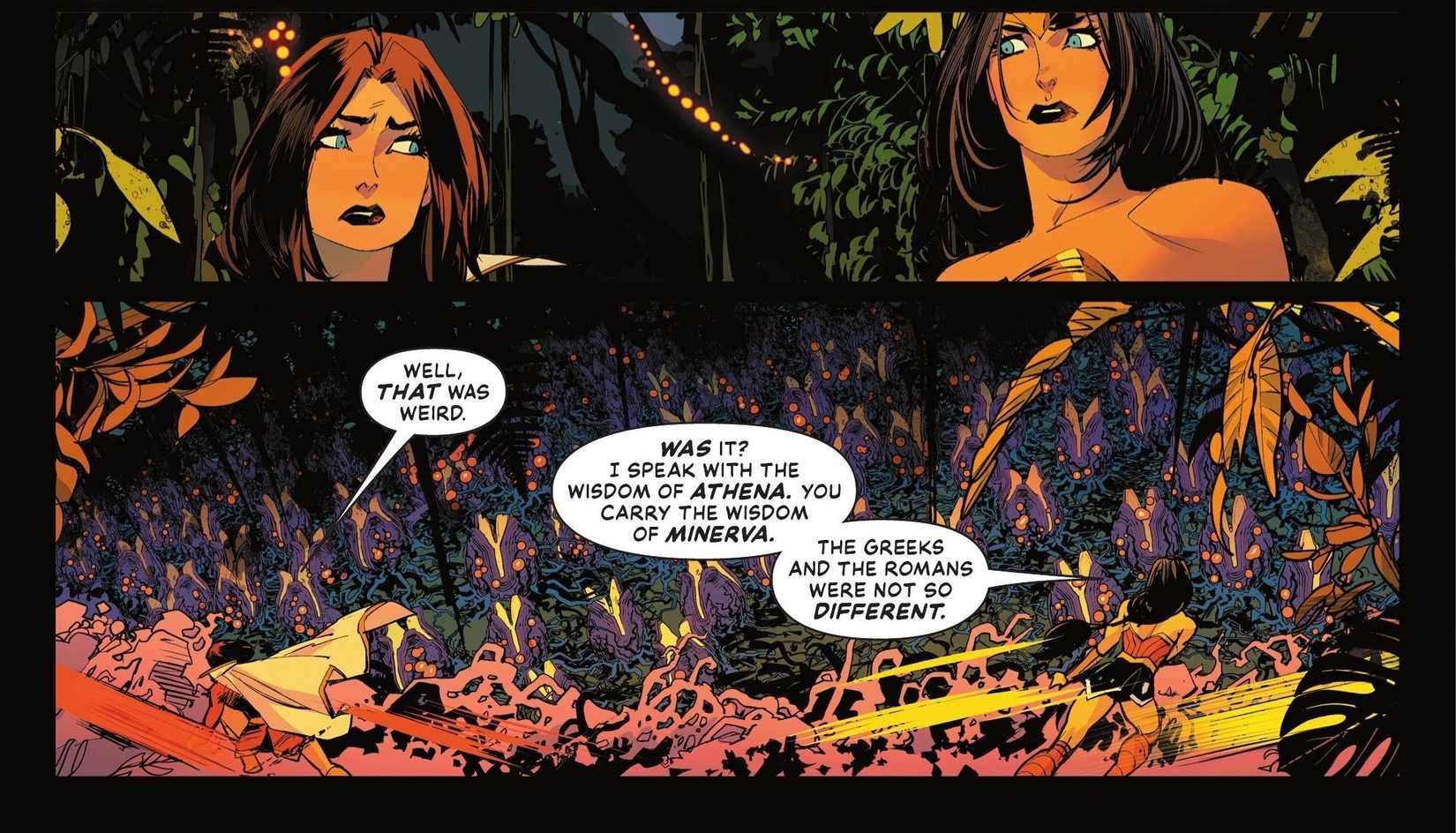 “Hablo con la Sabiduría de Atenea. Tú llevas la Sabiduría de Minerva”. – Mujer Maravilla en Liga de la Justicia Ilimitada #2 (2025)