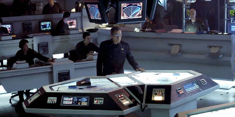 Otros miembros de la tripulación estarían sentados en sus distintas posiciones, no muy diferentes a viaje a las estrellasLa configuración estándar, pero mientras que un capitán de la Flota Estelar se sentaría en una silla en el medio, Adama se paró ante su equipo como un profesor universitario o un director de orquesta.. Ronald D. Moore ha confirmado que esta inusual elección de diseño fue una respuesta calculada a la viaje a las estrellas fórmula. Moore (vía cableado) afirmó: “Había hecho mucho Trek, y realmente quería tener una regla general de que si Trek iba hacia la derecha, íbamos a ir hacia la izquierda… No hay silla de capitán, no hay lugar para que se siente el comandante.“