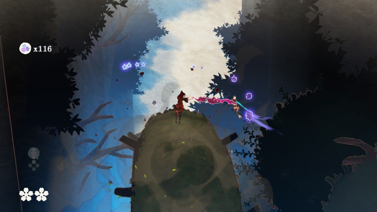 La jugabilidad real de Bayonetta Origins: Cereza y el demonio perdido es marcadamente diferente de cualquier otro juego de la franquicia. Los jugadores controlan a Cereza y Cheshire mientras exploran los mapas del juego, que son representaciones de arriba hacia abajo inspiradas en libros de cuentos que presentan bocetos y páginas dobladas en los bordes. Cereza y Cheshire tienen diferentes habilidades que hacen que la exploración sea un esfuerzo en conjunto, y aunque los rompecabezas nunca van más allá de lo básico, el acto de viajar a través de diferentes áreas y desbloquear nuevas habilidades o ritmos de la historia es un bucle convincente. Que el juego sepa lo que quiere hacer y lo haga bien significa que su progresión se mantiene fluida en todo momento.