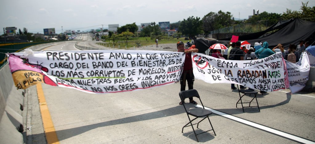 Becarios del programa Jóvenes Construyendo el Futuro bloquearon ambos carriles de la avenida Plan de Ayala y el acceso al Paso Exprés de Cuernavaca, pues denuncian que dieron de baja a alrededor de mil beneficiarios.