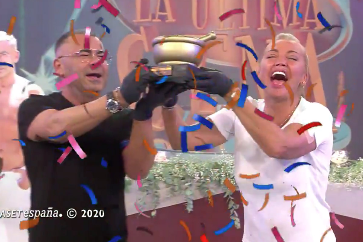 El presentador y la colaboradora se han impuesto a Terelu Campos y a Víctor Sandoval por más de un 66 por ciento de los votos de la audiencia y un premio de 20.000 euros que irá destinado a una organización benéfica. El menú de la noche consistía en un primer plato de gazpacho con esferificación de pepino, espuma de jamón serrano y cristales de pimiento, seguido de un principal de chipirones rellenos. Han sido varios los colaboradores que han dictaminado que la elaboración de Jorge Javier y Belén estaba mejor conseguida que la de Terelu y Víctor, algo que incluso ha llegado a molestar a la hija de María Teresa Campos, que durante unos minutos ha abandonado el plató