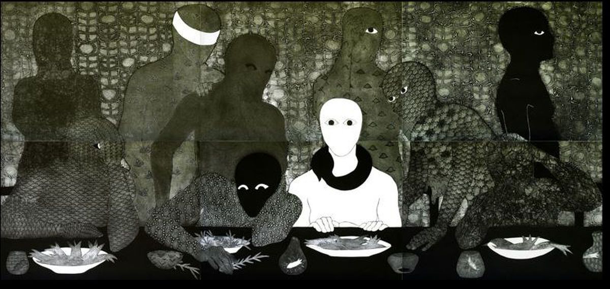 Caminando silenciosamente por la exposición, el gran hallazgo cultural aquí, más allá del trabajo con el grabado, es la Sociedad Leopardo, organismo secreto originado en Sierra Leona y activo hasta mediados del siglo XX, del que bebe la artista para tramar su narrativa llena de mascaradas. Tales sociedades constituyeron la base de las hermandades Abakuá establecidas en las ciudades portuarias del occidente de Cuba con el objetivo de proveer protección y ayuda a sus miembros, siempre hombres y para hombres, y que estigmatizó y segregó a la mujer. Durante toda la trayectoria de Ayón, el ritual y las creencias de esta hermética hermandad le sirve para crear un lenguaje con el que poner la tilde a cuestiones éticas, estéticas e ideológicas universales. La reivindicación de la mujer leopardo desde todos los ángulos posibles. La representación de la diosa Sikán, sacrificada por los hombres de su comunidad y considerada alter ego de Ayón, trasciende el enfoque de género para abordar un universo complejo de relaciones y conflictos tales como la necesidad de trascender la memoria colectiva. Sin duda, ella lo consiguió pese a la brevedad de su vida y su carrera. Pese al universo de agudos conflictos internos y profunda angustia existencial. O gracias a ello.
