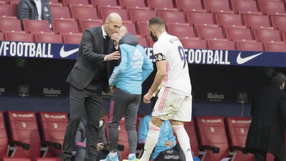 Un Benzema que forzó para estar en el derbi. Tras tres partidos ausente (Valladolid, Atalanta y Real Sociedad) y solo dos entrenamientos al mismo ritmo que sus compañeros por unas molestias musculares en el abductor de la pierna izquierda, jugó los 90 minutos.