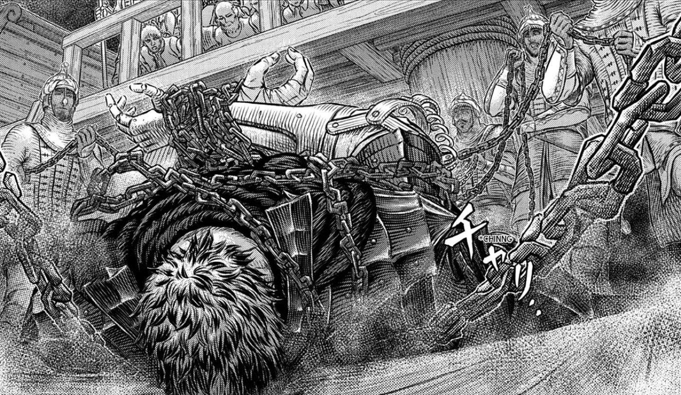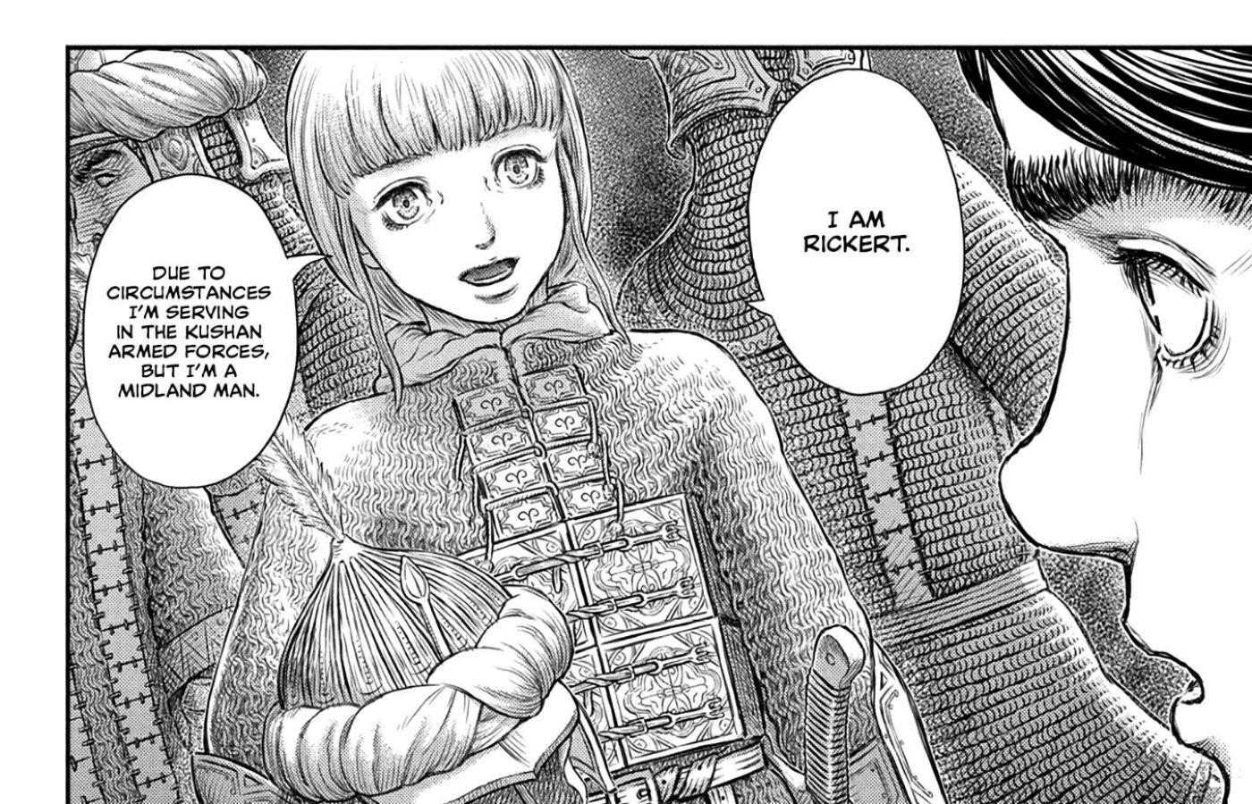 “/> Justo cuando esta situación parece más sombría, un amigo inesperado se revela dentro de las filas de Kushan. Rickert, ex compañero de Guts en The Band of the Falcon. Por leve que pueda parecer este indulto, lo que señala en su totalidad puede en realidad ser la formación de la alianza que finalmente derribará a Griffith de una vez por todas.