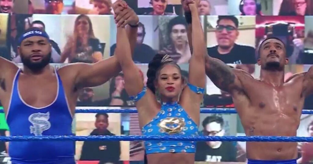 El inicio de SmackDown esta noche no fue otro que la Campeona Femenina de SmackDown, Bianca Belair, y estaba de buen humor cuando tomó el micrófono. Sin embargo, su presentación fue interrumpida por Dirty Dawgs Dolph Ziggler y Robert Roode, quienes salieron a decir que estaban aquí para presentar el programa. Luego fueron interrumpidos por los Street Profits, quienes luego fueron interrumpidos por Bayley. Bayley salió para dirigirse a Belair.