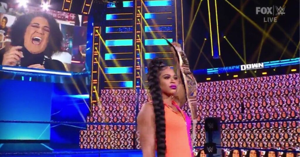 La EST de WWE Bianca Belair salió al ring durante el SmackDown de esta noche para dirigirse a quienes la han criticado a lo largo de su carrera, aunque también abordó la actual espina en su costado antes de que terminara el segmento. Ese sería Bayley, quien, después de una apasionada promoción de Belair sobre lo que ha pasado y superado, fue convocada para un combate. Belair admitió que la risa estridente de Bayley se estaba poniendo un poco debajo de su piel, y quiere cerrar el libro sobre Bayley para siempre, por lo que desafió a Bayley a un partido en Hell in a Cell.