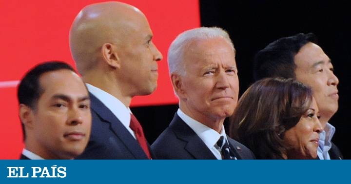 El veterano político Joe Biden, vicepresidente de la era Obama y líder de los sondeos de las primarias demócratas, se convirtió en el debate de esta noche en Detroit en el centro de los ataques del resto de rivales, que le asediaron desde mil flancos: las deportaciones del Gobierno anterior, su historial de voto en las reformas de justicia, viejos comentarios sexistas o su tibieza en algunas batallas contra la segregación racial. Cuando Biden, de 76 años, y Kamala Harris, de 54, se saludaron sobre el escenario, un micrófono oportunamente encendido agarró al exvicepresidente decirle a la senadora californiana con una sonrisa: “No seas dura conmigo, niña”. Harris había arrollado a Biden en el debate demócrata de hace un mes en Miami y el de este miércoles podía servir de revancha o de jaque, pero no hubo un duelo a dos. Para desgracia de Biden, todos fueron duros con él.