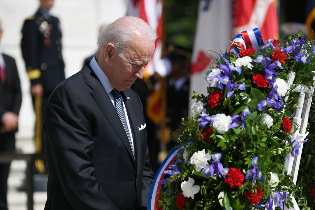 El presidente Joe Biden acudió el lunes al Cementerio Nacional de Arlington para conmemorar el Día de los Caídos en Guerras y dejó una corona de flores.