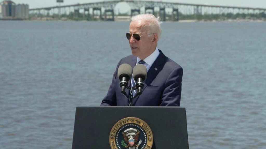 Con un viejo puente al fondo de más de 70 años, y en la localidad Lake Charles, Louisiana, Biden retomó su gira por Estados Unidos para defender su plan de infraestructura valorado en $2.3 billones.