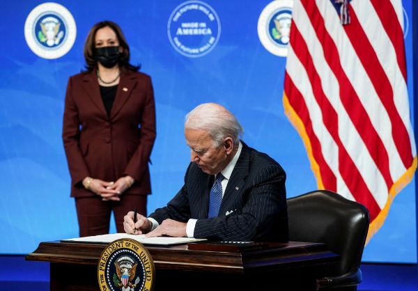 Biden explicó que, a través de una orden ejecutiva destinada se buscará cerrar las lagunas legales en las disposiciones existentes de la estrategia Compra Estadounidense (Buy American), que reúne los 600 mil millones en bienes y servicios que el gobierno federal compra cada año.