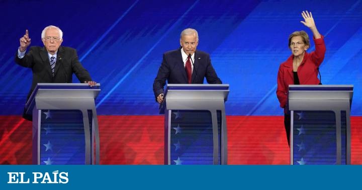 Fue uno de los instantes más descriptivos del tablero demócrata en estos momentos. Si hubiera que trazar un paralelismo con 2008, Biden encarna la primera candidatura de Hillary Clinton, la experiencia y el discurso pragmático frente al mensaje inspirador de aquel joven senador de Illinois que se convirtió en el primer presidente afroamericano de la historia estadounidense. Hoy, la ilusión obamista, la que habla de refundaciones, se encuentra repartida entre un grupo de precandidatos muy diverso. Nunca se habían presentado tantas mujeres (esta noche coincidieron en el escenario Warren, Harris y Amy Klobuchar), hay un aspirante de origen asiático, Andrew Yang, que propone una renta universal, toda una revolución en Estados Unidos, y otro de tan solo 37 años que es el primero abiertamente homosexual. A la cabeza, sin embargo, siguen dos veteranos de Washington, Sanders y Warren.
