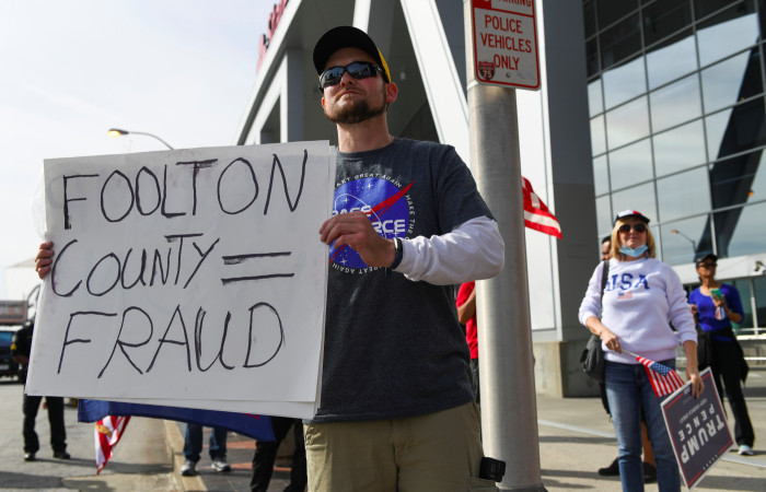 Partidario de Trump frente a centro de conteo de votos en Atlanta | Foto: Reuters