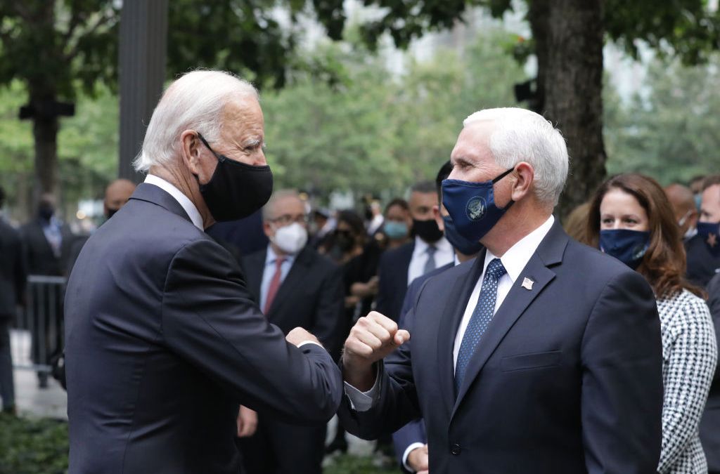 Biden y Pence intercambian saludo en el homenaje a las víctimas del 9/11 en Nueva York