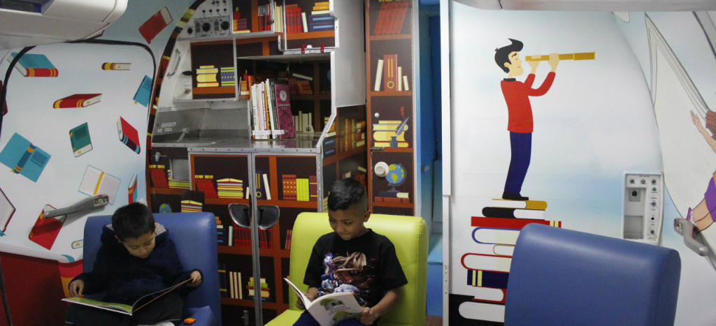 El Avión Biblioteca Volando a la Utopía cuenta con 29 espacios para la lectura, una cabina con simulador de vuelo semiprofesional, con dos asientos; además de 26 computadoras que tendrán 15 libros electrónicos precargados.