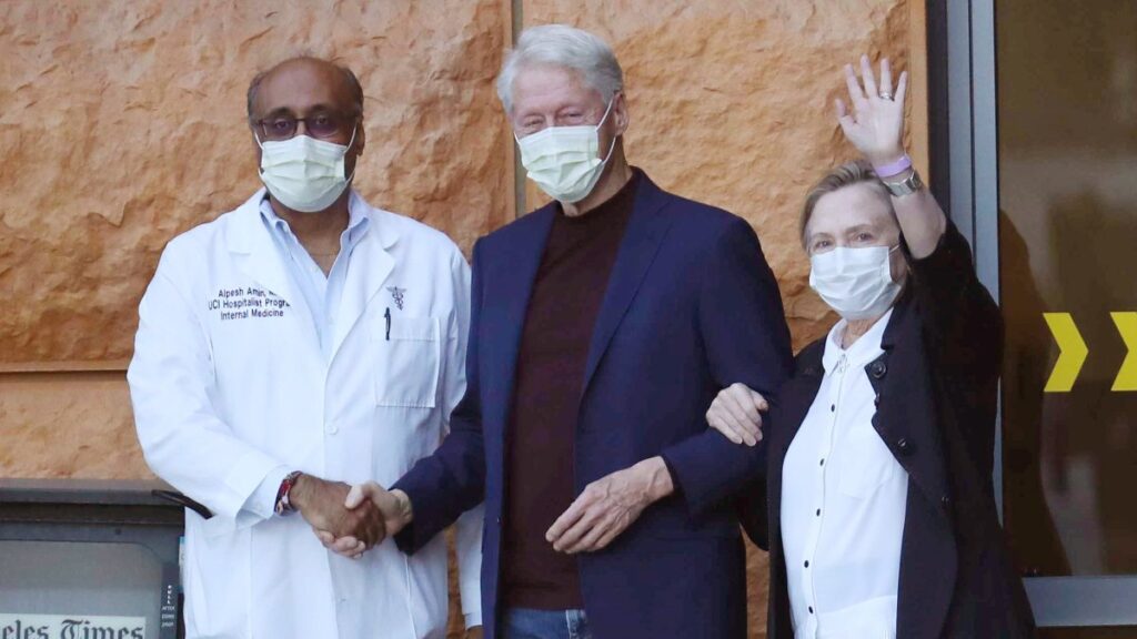Clinton salió del Centro Médico Irvine de la Universidad de California a las 8 de la mañana con su esposa Hillary Clinton del brazo.