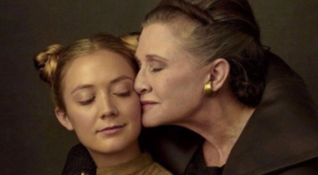 Fisher murió en 2016 de un paro cardíaco, su muerte se produjo pocos días después de haber experimentado una emergencia médica mientras estaba en un vuelo internacional. Su muerte tuvo un gran impacto en la última trilogía de Star Wars, ya que la primera película de la nueva trilogía The Force Awakens solo había llegado a los cines el año anterior. Cuando llegó el capítulo final, The Rise of Skywalker, finalmente se decidió utilizar imágenes inéditas que Fisher había filmado para The Force Awakens para crear su última aparición en Star Wars.