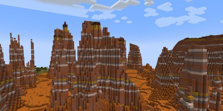 Las actualizaciones de Badlands anunciadas en 2019 fueron interesantes, y Mojang debería actualizar los biomas de Badlands existentes para incluirlas. Abundante en terracota, el bioma Badlands consiste en mesas áridas y extensas con gargantas y formaciones rocosas que recuerdan al suroeste de América del Norte. Aunque Badlands es uno de los biomas más raros en Minecraftsu apariencia única lo convierte en un destino popular para los exploradores de Minecraft.