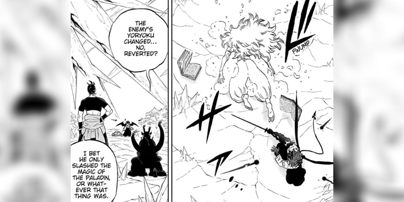 En trébol negro En el capítulo 348 de Yuki Tabata, dos espectadores de la lucha de Asta contra el Paladín Yrul se dan cuenta de que la magia de Yrul cambió o se revirtió después de que Asta aparentemente cortó la magia del Paladín en lugar del propio Yrul. Esto crea la impresión de que la magia que la hermana “paladinizada” Lily ejercerá contra Asta no será el verdadero poder mágico de Lily en trébol negroy eso es un gran error.