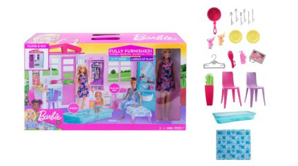 JUGUETES |  En AliExpress Plaza (con envíos desde España en 72 horas) puedes sumar cupones descuento al precio ya rebajado. Un ejemplo es esta casa de muñecas Barbie con muebles y accesorios. Está indicada para niños de más de tres años, incluye el mobiliario y más de diez accesorios, como cubiertos, cacerolas o una piscina para que no falte ningún detalle de juego. Consíguela por 34,39€ con el cupón BFBBIE15.