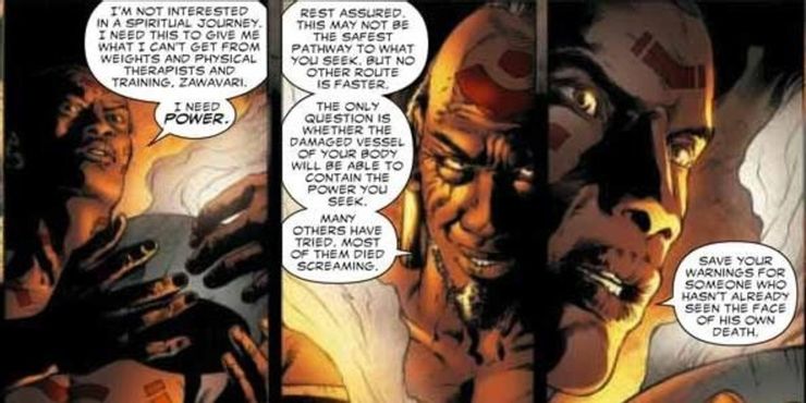Zawavari es un usuario de magia de Wakanda que probó el temple de T’Challa como la nueva Pantera Negra. Era más un recluso debido a que los habitantes de Wakanda generalmente preferían la tecnología a la magia, pero fue buscado una vez que no hubo otras opciones.