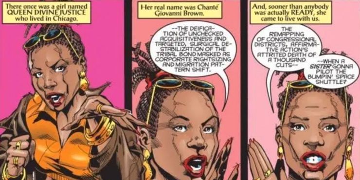 Sería un cambio genial de la norma presentar a un extraño en la serie. La Reina Justicia Divina era una princesa de la tribu Jabari que creció en Chicago y desconocía su estado hasta que fue convocada a Wakanda.