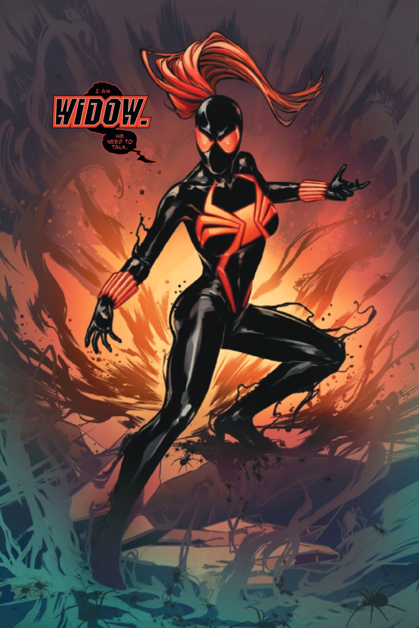 - El nombre en clave de Venomized de Black Widow, Widow, significa su transformación y redefinición como héroe de Marvel Comics.