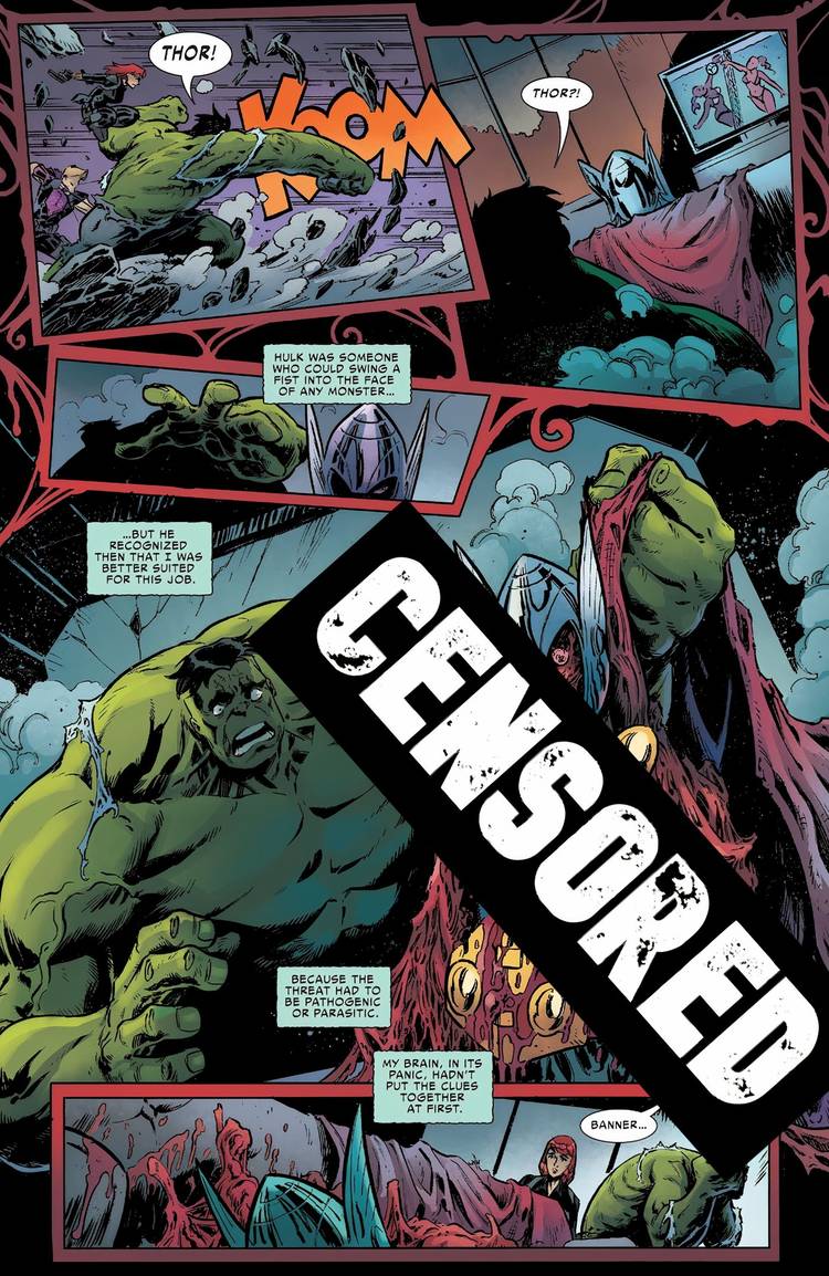 Como Black Widow, Venom elimina al resto de los Vengadores, incluidos Hawkeye, Hulk, Iron Man y Thor. Al igual que con el Capitán América, Venom consume a Thor, reduciéndolo a una pulpa sangrienta que incluso Hulk se horroriza al ver. En esta historia, está claro que el único responsable de estos asesinatos fue Venom, no los Vengadores que habitaba el simbionte. Sin embargo, el hecho es que Venom habitaba en Black Widow durante la mayoría de estos asesinatos y demuestra ser el arma perfecta que Natasha podría usar para matar a los Vengadores en la Tierra-616.