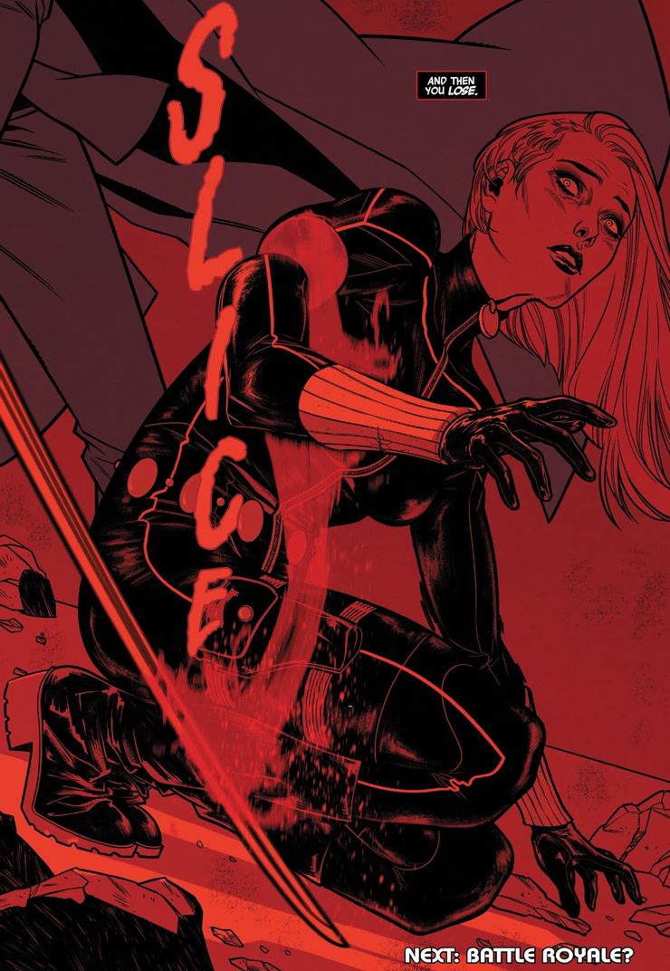 Natasha Romanoff es la mejor de las Viudas Negras, pero contra la Espada Viviente, se ve irremediablemente superada en armas y, como resultado, sufre una herida espantosa.