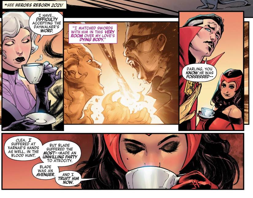 A Strange no le hizo gracia la negligencia de Blade al liberar a Adana, ni su actitud estoica cada vez mayor cuando había mucho en juego. Su relación empeora cuando finalmente adquieren la antigua espada de Lucifer, la única forma de derrotar a Adana, solo para que Blade deje que la espada caiga en las manos de Adana. A partir de ese momento, fue oficial: Blade perdió a su aliado más poderoso. Que Blade fuera poseído y matara a Strange fue solo una guinda de una dinámica que ya se estaba disolviendo. Es posible que Strange no se lo reproche a Blade (como su esposa Clea), pero eso no cambia el hecho de que no están hablando actualmente.