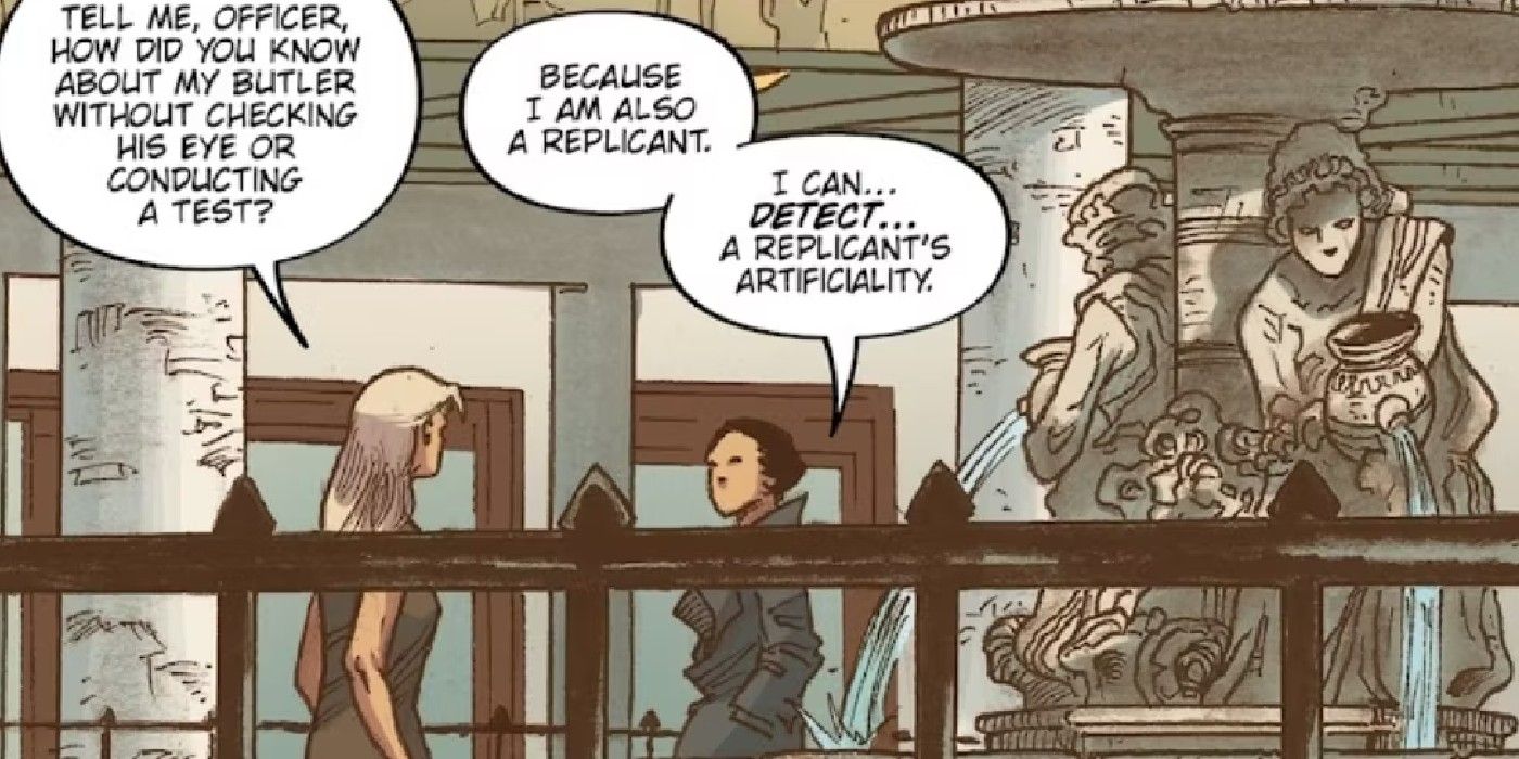 En Blade Runner 2039 # 2 por Mike Johnson, Mellow Brown y Andres Guinaldo, un Replicant Blade Runner llamado Luv está tratando de rastrear información sobre un supuesto laboratorio secreto de fabricación de Replicant. El rastro de Luv la lleva a la casa de una mujer adinerada que tiene a un Replicante de modelo antiguo como mayordomo. Cuando Luv ve a este Replicante como no humano, la mujer comenta lo impresionante que es que Luv pueda hacer eso sin mirar al mayordomo por un número de serie o sin usar una prueba de Voight-Kampff. Luv responde que puede saber cuándo alguien es un Replicante con solo mirarlo, especialmente los modelos más antiguos que fueron fabricados por Tyrell Corp antes de que la actual Wallace Corp se hiciera cargo de la producción de Replicantes.